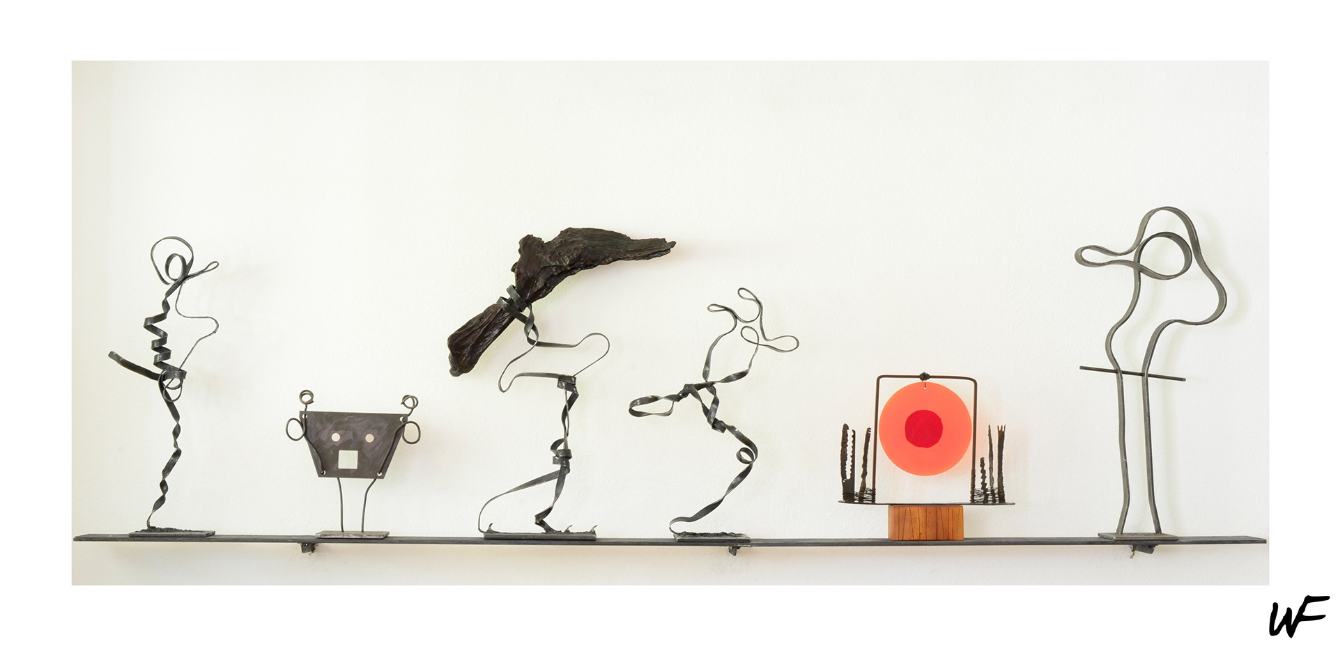 Das Schaffen von Figuren aus Stahl und Holz erfordert die Verbindung von Vision und leidenschaftlicher Kraft - sie setzen Kreativität frei und erzeugen die Energie, die zur Formung der Materie nötig ist. Ein Teil der Skulpturen entstand durch die Kombination von Stahl und Holz, was sie um natürliche Kontraste von Struktur und Farbe bereichert.