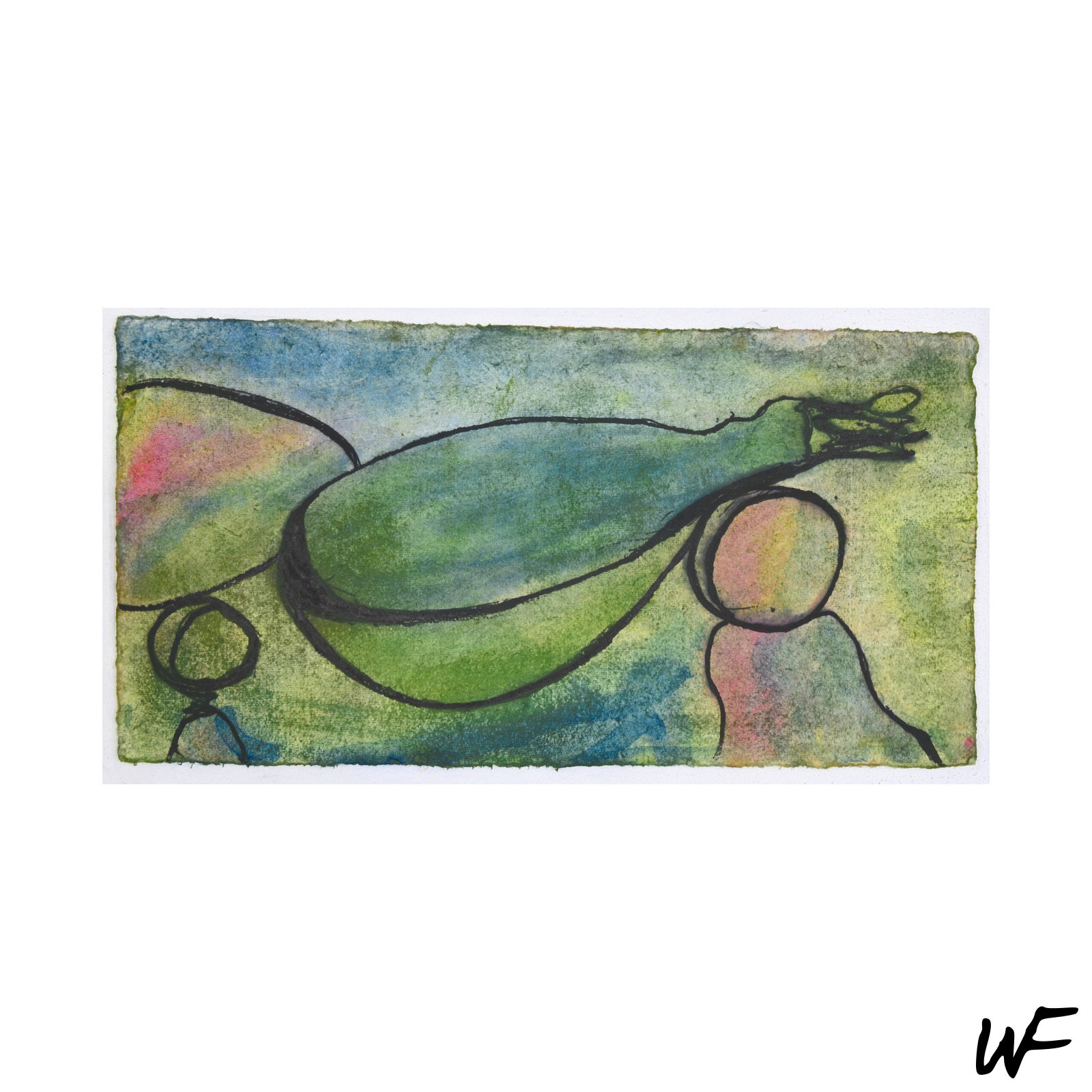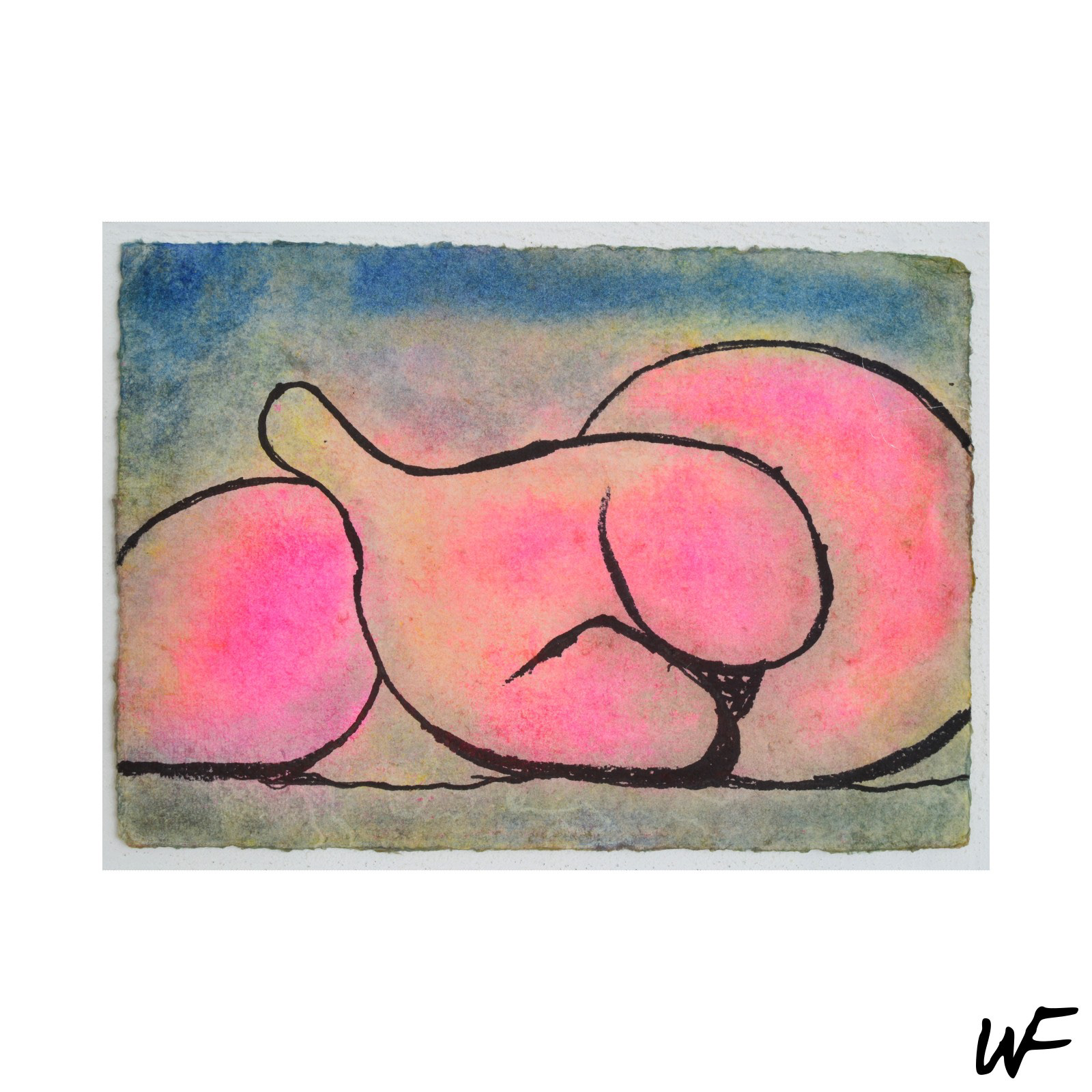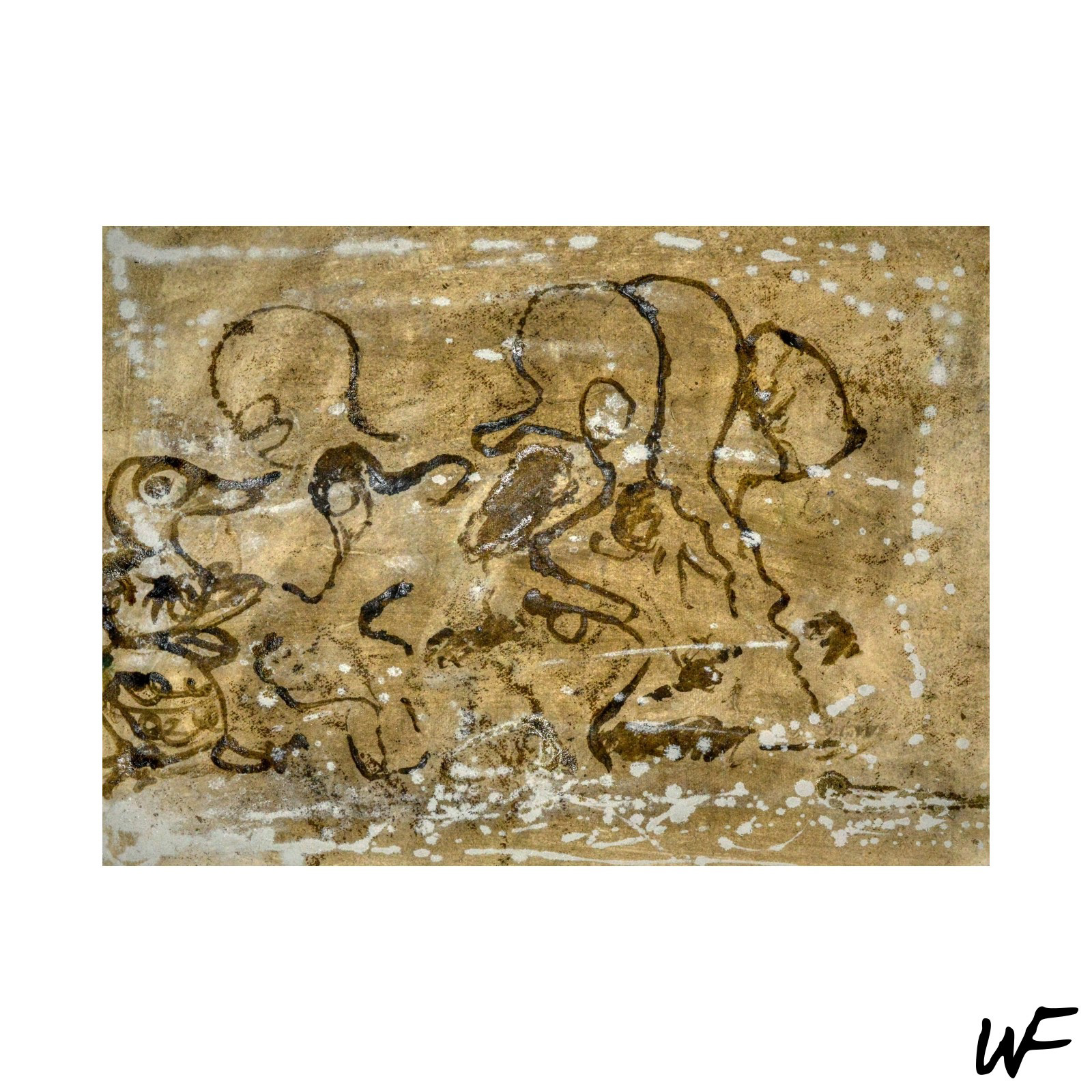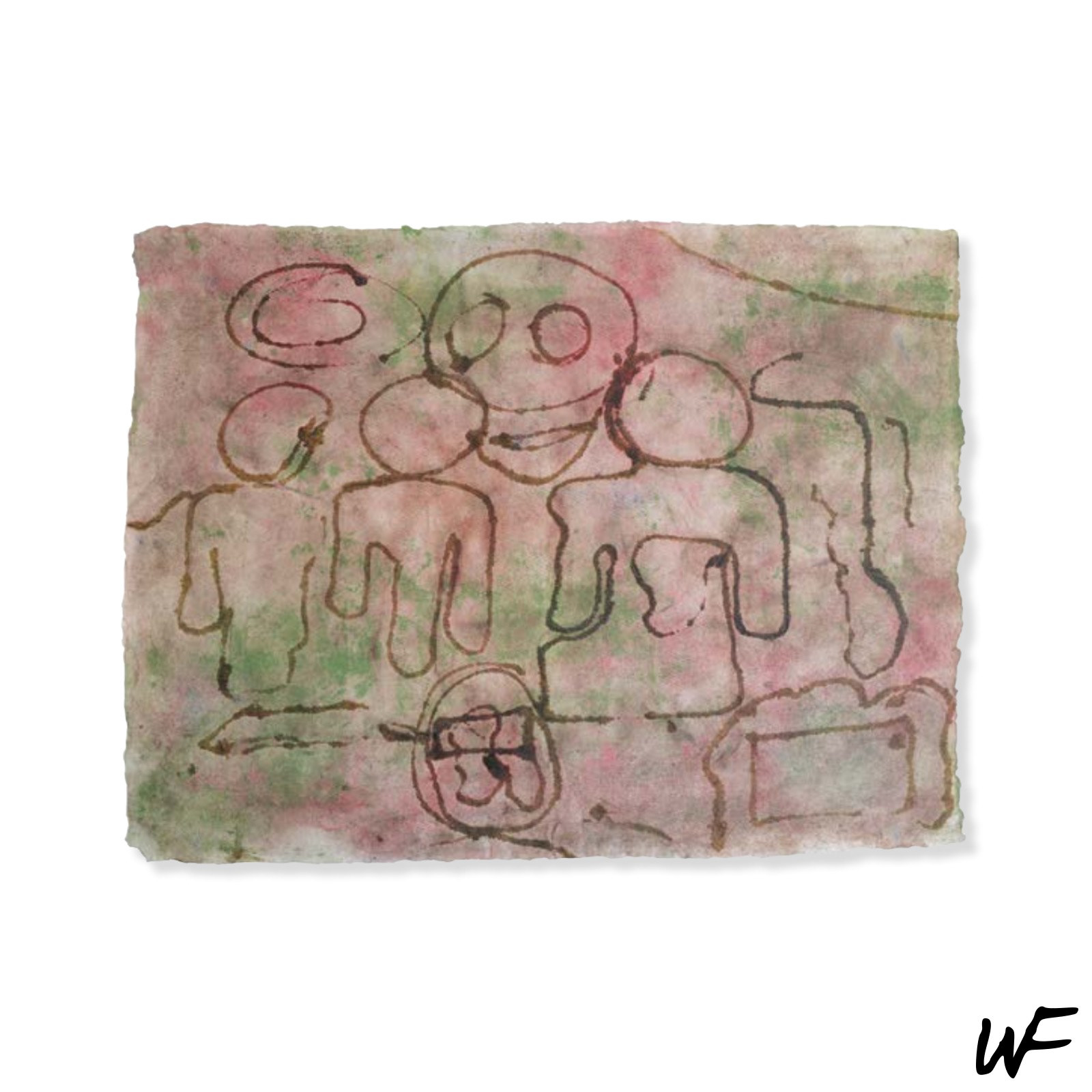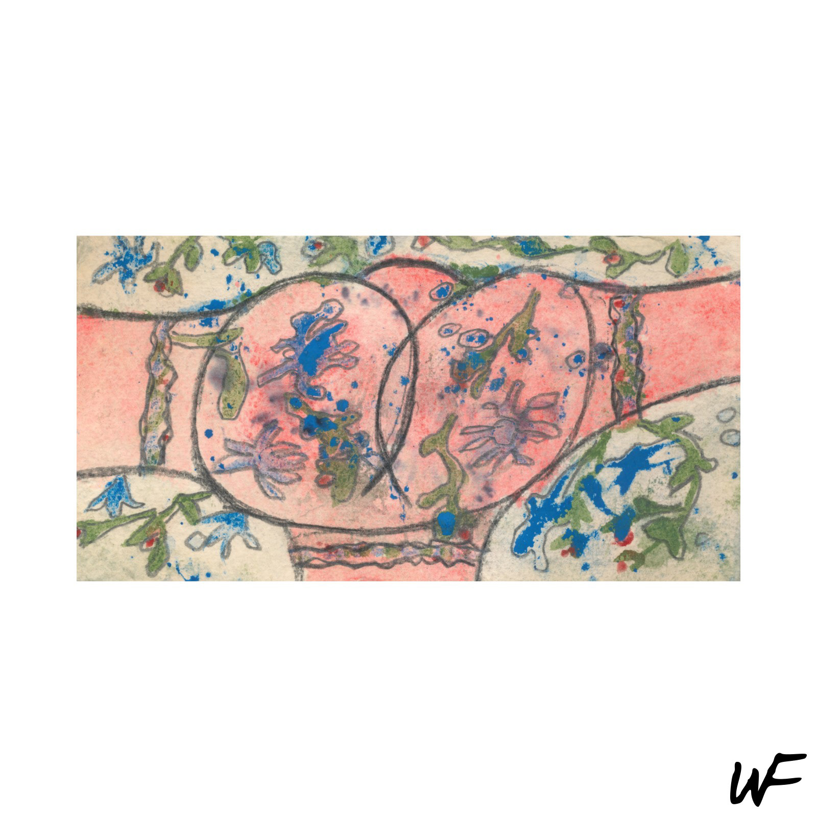 PL / Cykl subtelnych i intrygujących kompozycji, które balansują na granicy znaku, formy i gestu. Artysta posługuje się delikatną paletą pastelowych barw, przełamywaną wyrazistym konturem i organiczną plamą. Figury na obrazach zdają się być zawieszone pomiędzy abstrakcją a narracją – przywodzą na myśl symbole pierwotnych rytuałów lub fragmenty języka wizualnego, który dopiero się tworzy.