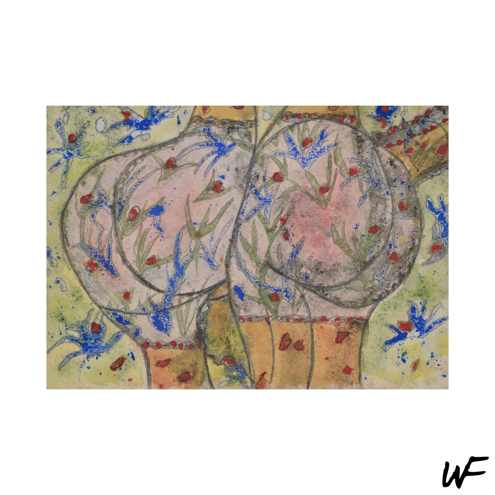 Mischtechnik auf Papier - obrazy wykonane techniką mieszaną na papierze łączą lekkość materiału z intensywnością wyrazu – pigmenty, tusze i farby tworzą wielowarstwowe struktury, nadające pracom lekkości, ale też głębi, gdzie papier staje się miejscem nieustannego przetwarzania wrażeń, znaczeń i emocji.