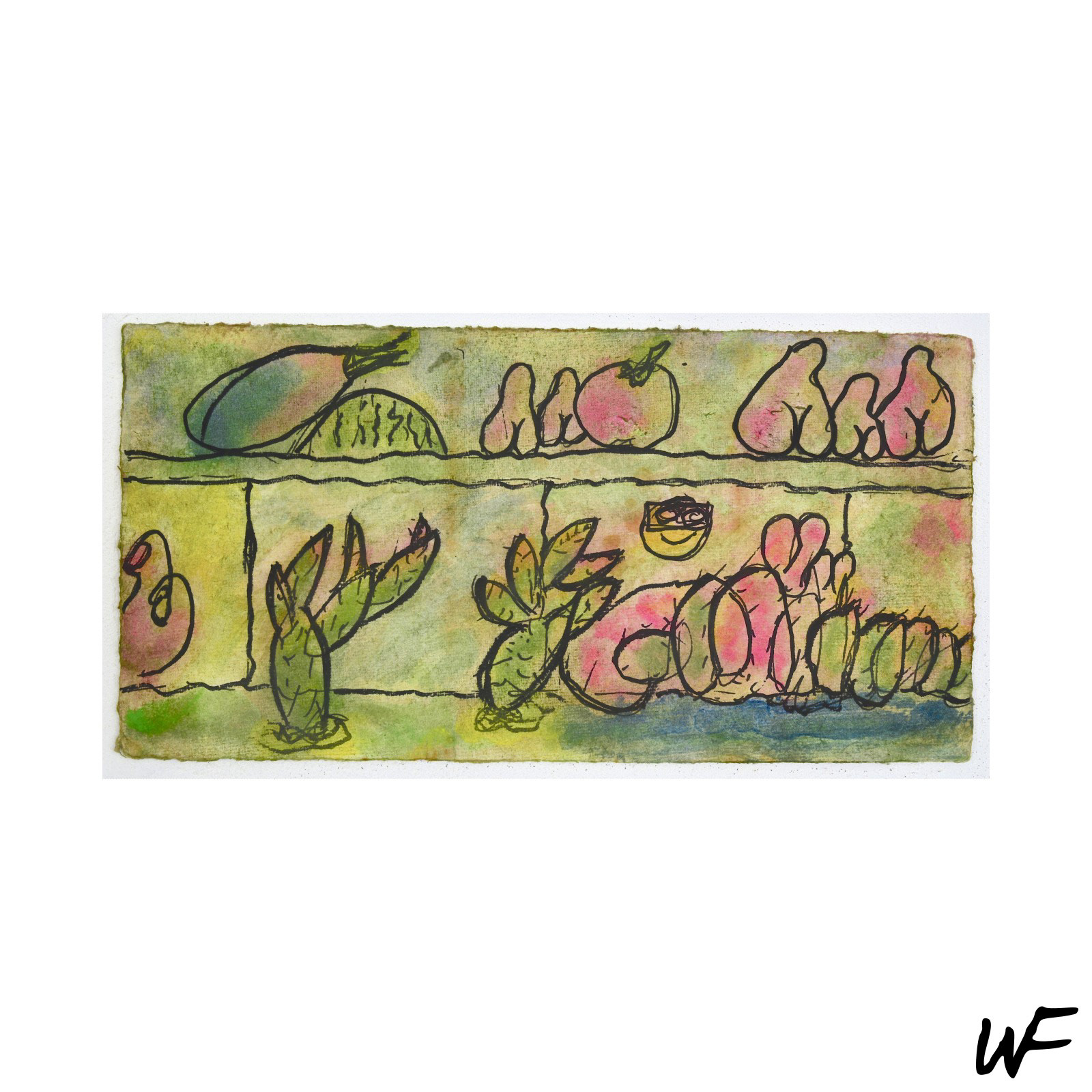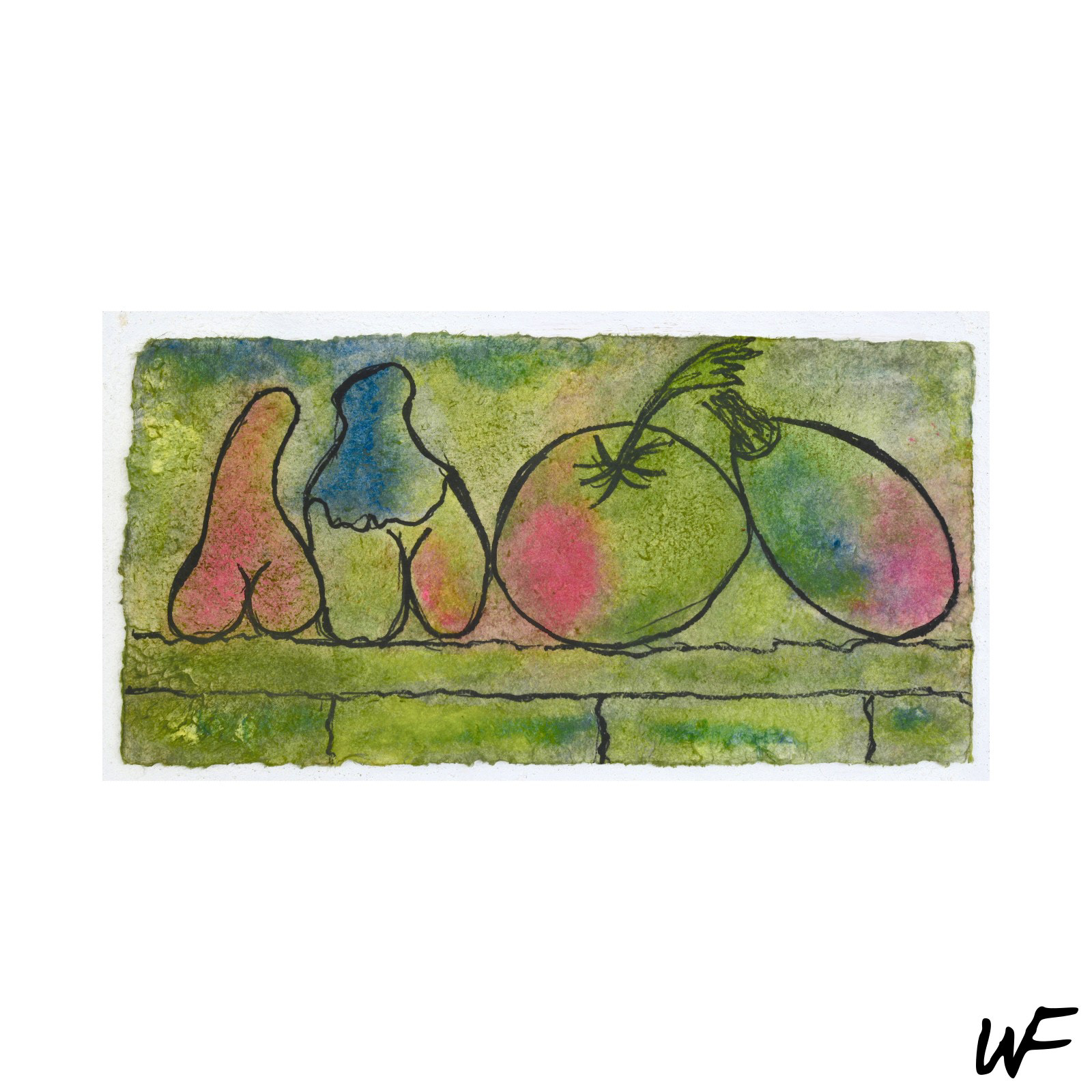 DE / Eine Serie von Gemälden, die an der Grenze zwischen Figürlichkeit und organischer Abstraktion balancieren. Die Werke sind ein visuelles Spiel mit Formen – appetitlich, prall, eindeutig und zugleich mehrdeutig. Ihre rosa-grüne Farbpalette und die vereinfachten Konturen erinnern an überreifes Obst – fast platzend vor Saft und bereit zum Pflücken.