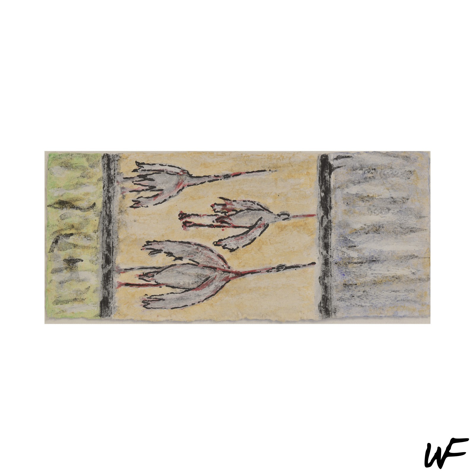 EN / A cycle of subtle and intriguing compositions balancing between sign, form, and gesture. The artist works with a delicate palette of pastel colors, broken by bold contours and organic stains. The figures in the paintings seem suspended between abstraction and narration – evoking symbols of primordial rituals or fragments of a visual language still in the making.The series focuses on the relationships between forms, where minimalist backgrounds contrast with the expressiveness of line and color. It is intuitive painting, open to interpretation, which through its stillness and symbolism becomes a form of visual meditation. Wojtek Figielski drew inspiration here from the work of Manfred Schüler – a German painter and a close friend of the artist.