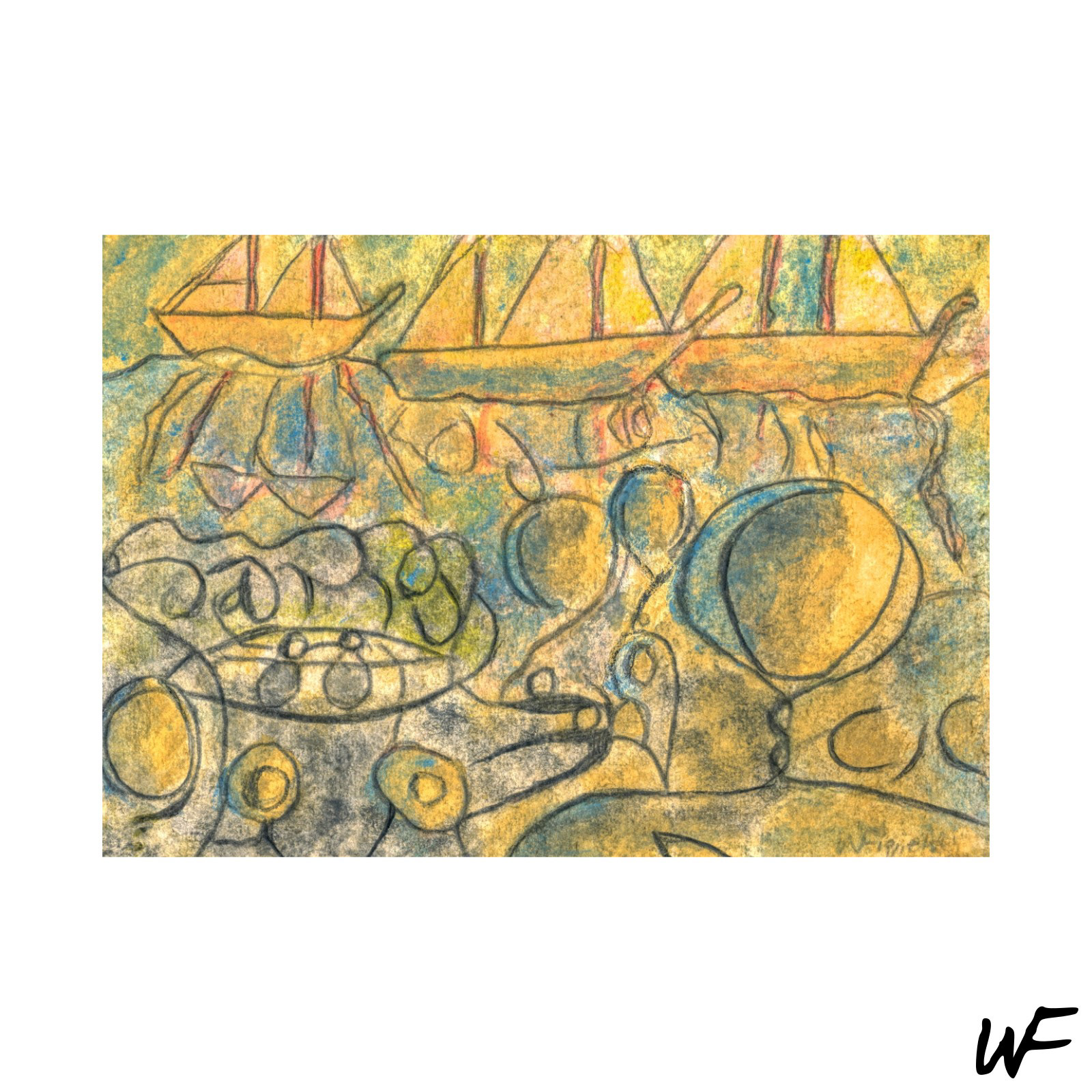 Es sind Arbeiten, die aus vielen meiner Bilder ausgewählt wurden und an ein intuitives, vieldeutiges Malen erinnern — schwebend zwischen Abstraktion und symbolischer Erzählung, in der jede Form zugleich Konkretes und Metapher sein kann.